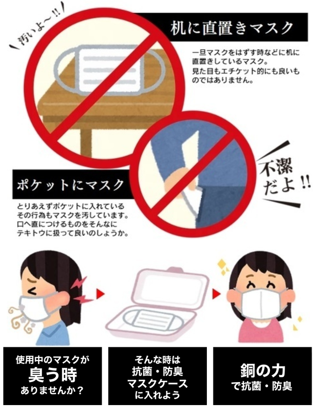 - 使用中のマスクが臭う時ありませんか?机に直置きマスクは、汚いよ~!!