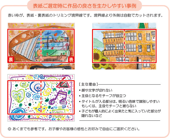 表紙に使用する作品は、必ずお客様側で選定をお願いいたします。