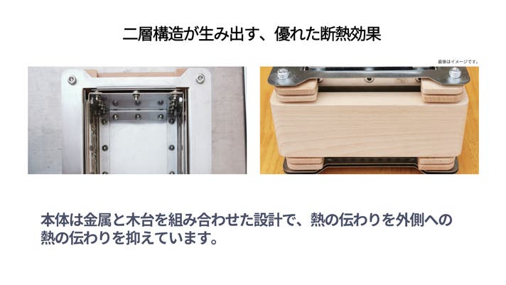 さらに、耐熱1200℃の石英ガラスとステンレス304を採用し、高い耐久性を実現。末長くご愛用いただけます。