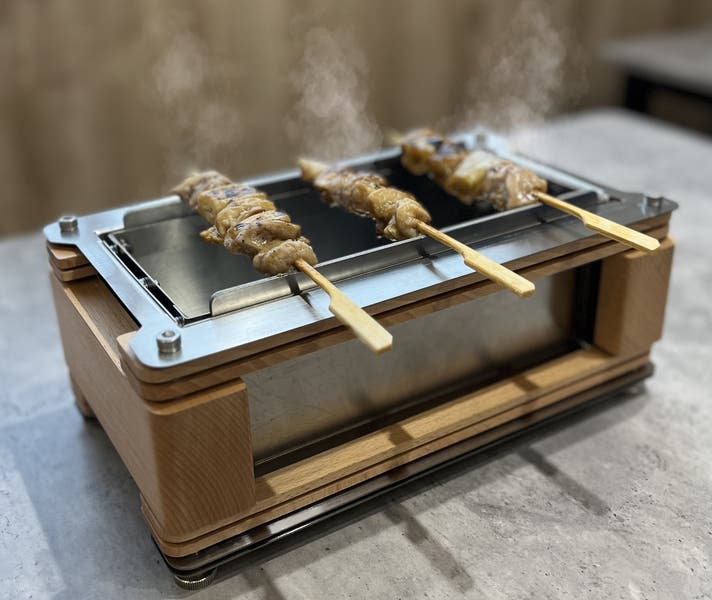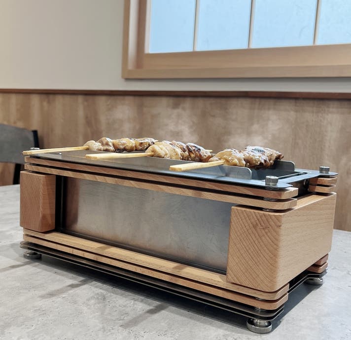 小さな焜炉で仕上げる炭火料理は、驚くほど香ばしく、格別な味わい。