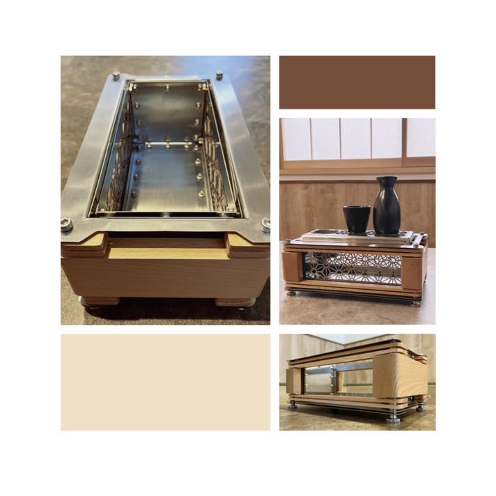 無垢材の木台と七宝文様の五徳が織りなす上質なデザインは、どんな空間にも自然に馴染み、インテリアとしても目を楽しませます。