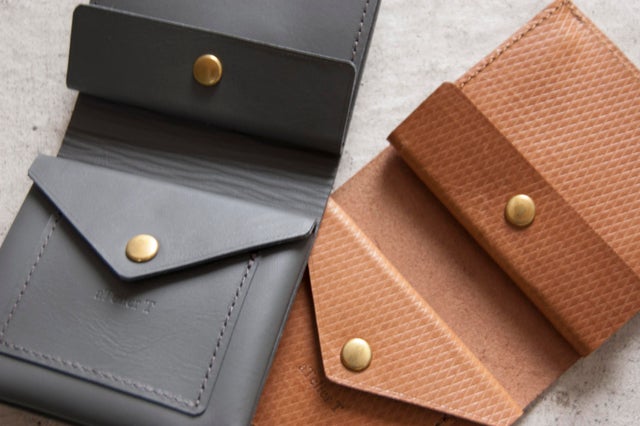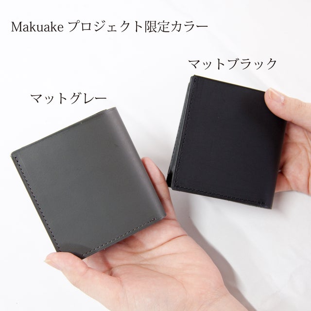 コンパクトウォレットについては、プロジェクト限定でマットグレーとマットブラックのタイプもご用意させていただきました。小さい財布のデザインにマッチした、光沢感の少ない落ち着いた色味です。