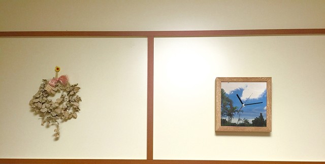 木×写真×時計 いつも身近に思い出や好きなものを飾る。