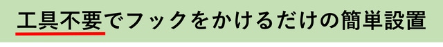 フックの先端に滑り止めを貼付している為、軽い振動ではずり落ちません。