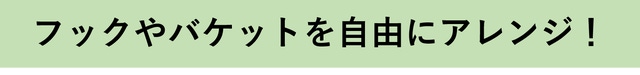 従来の製品と違いフックやバケットは二つの棒でロックし横揺れや脱落を防止。