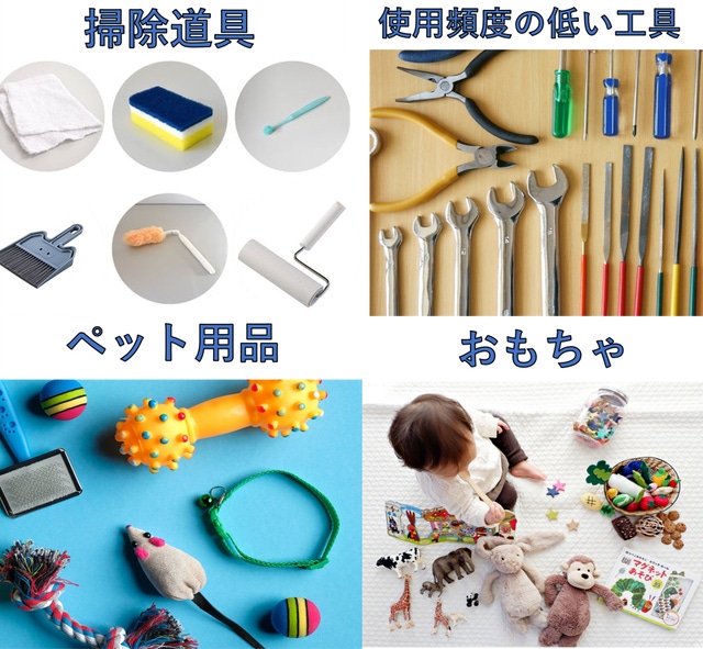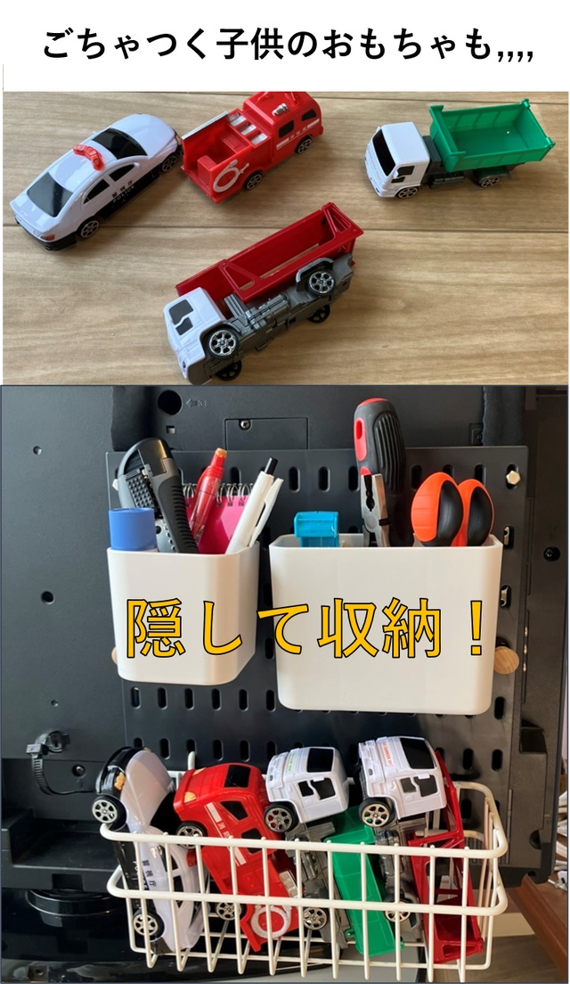 日用品、生活雑貨の小物や、子供のおもちゃなど生活感が出て使う頻度が高い物を収納するのに向いているアイテムです。