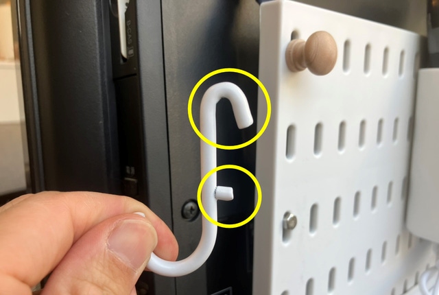 正面からTVを見ても厚さが5ミリ程度なのでフック部が気になる事はありません!