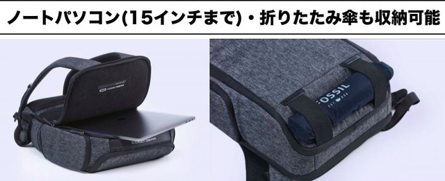 さまざまなシーンで利用の多いノートパソコンも収納ができる。