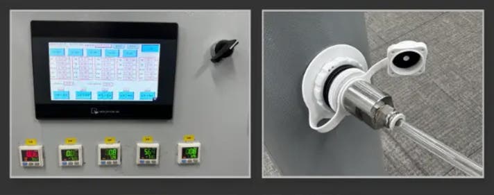空気圧測定装置を使用し、正確な充気テストを実施しています。