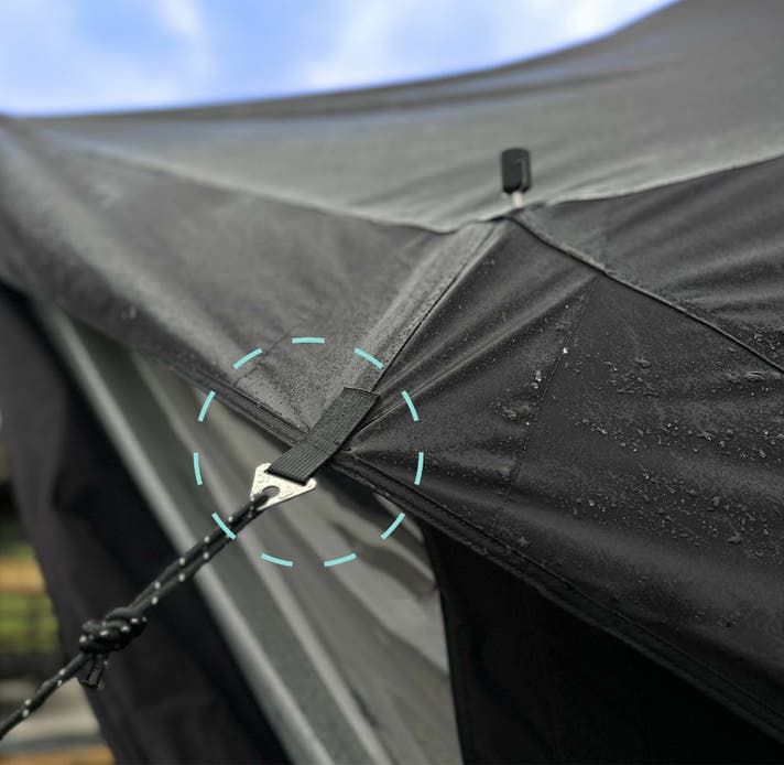 張り綱固定用ループでしっかりと設置でき、全体構造が安定。強めの風でも安定感を保てる設計です。