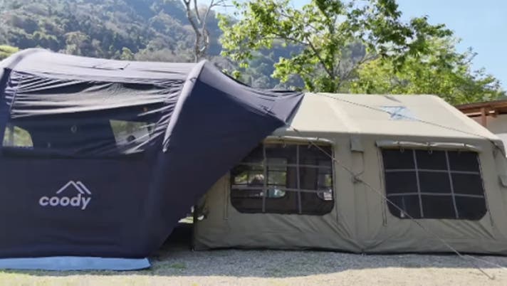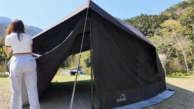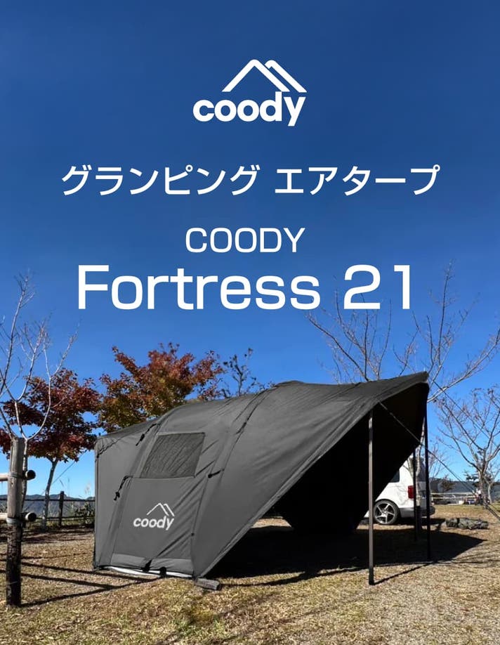 四季折々の自然の中で、贅沢な空間と穏やかな時間を。coodyフォートレス21エアタープとともに、豊かなアウトドア体験をお楽しみください。
