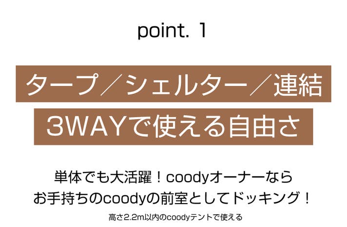 coodyユーザーにはお手持ちのテントの前室として拡張がオススメ