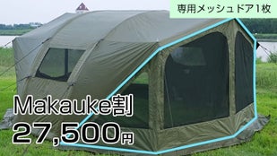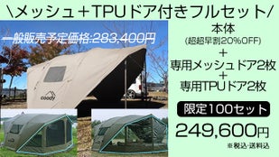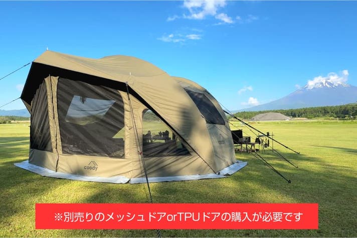 前後にTPUドアやメッシュドアを装着すれば、大空間の居住型テントに早変わり。