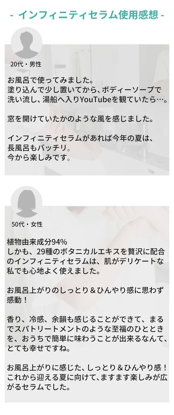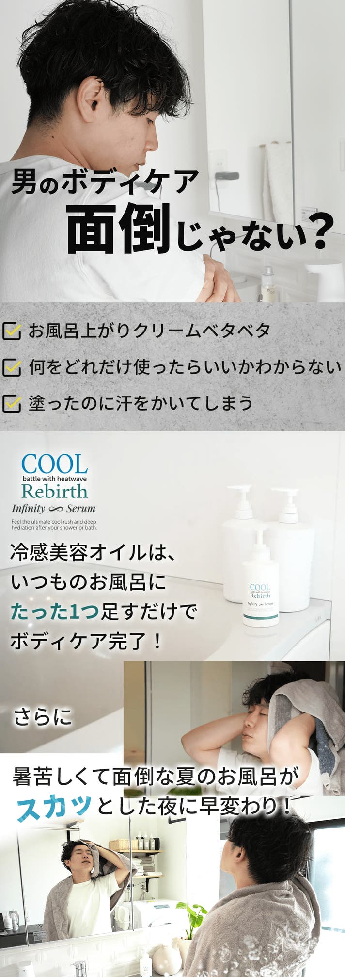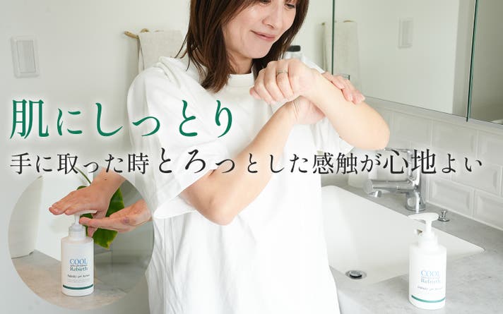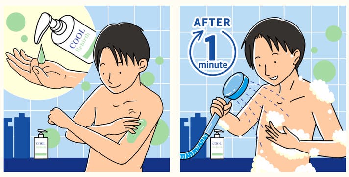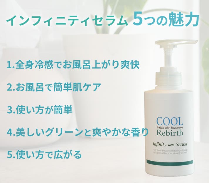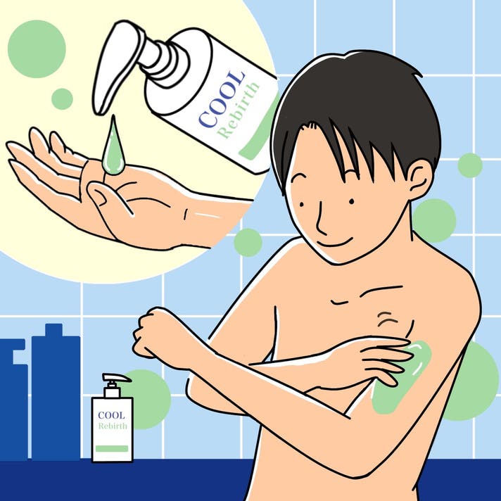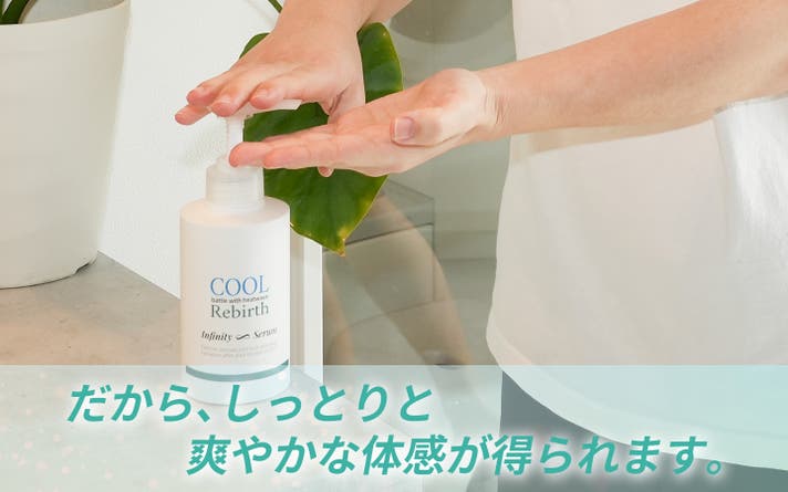 まずよく塗り込み、お風呂で洗うときの摩擦で、肌の角質層にセラムがしっかりなじむため、冷感が安定します。