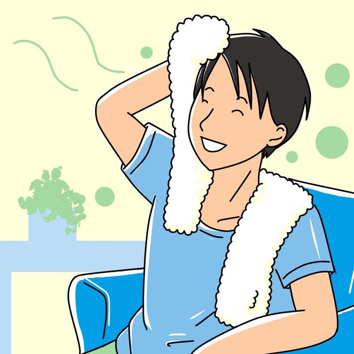 ④普段どおりに湯船に浸かるかシャワーで流し、タオルで拭きます。