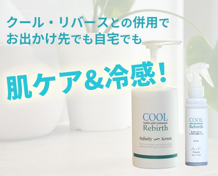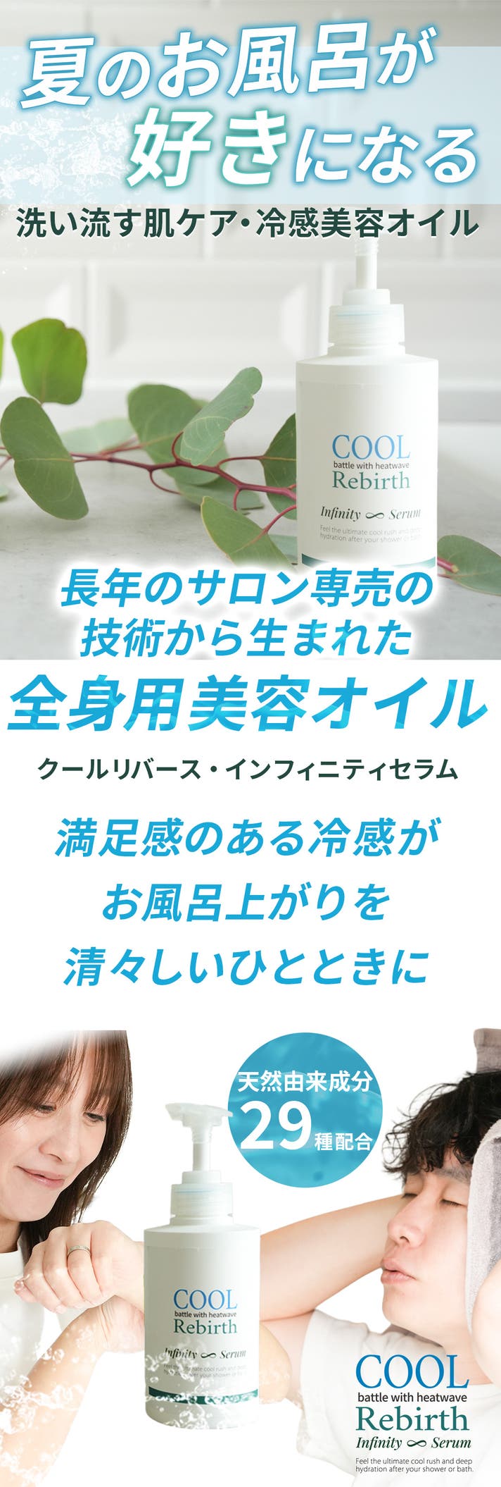 さらに、昨年ご好評いただいた新時代の肌ケア&冷感スプレー『クール・リバース』を一緒に使うと、オイルとスプレー、異なる冷感の相乗効果が出て、清涼感がパワーアップします!