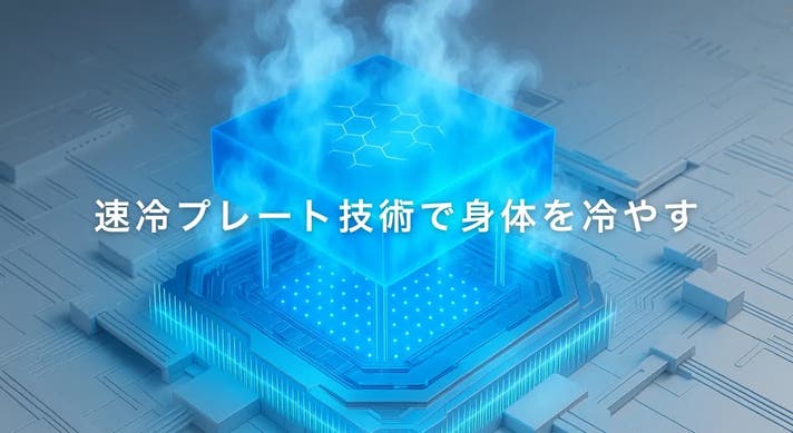風や氷を使わず、冷却プレートが肌に密着し素早く温度を下げます。
