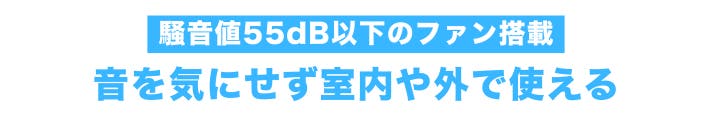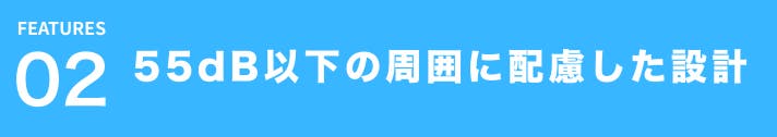 高性能稼働ファン搭載!わずか55dB以下のやさしい稼働音で周りに配慮した設計