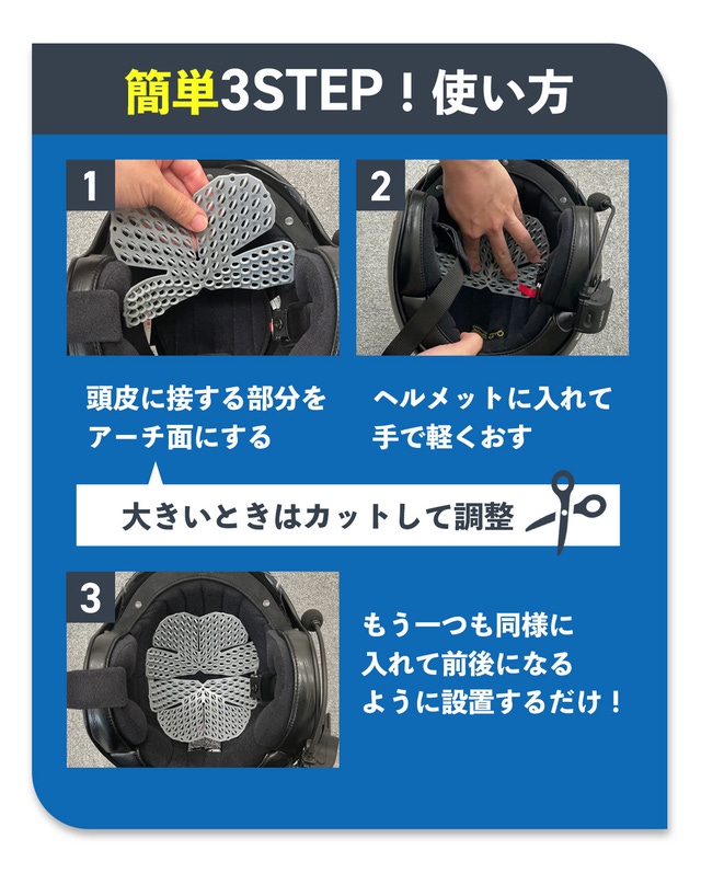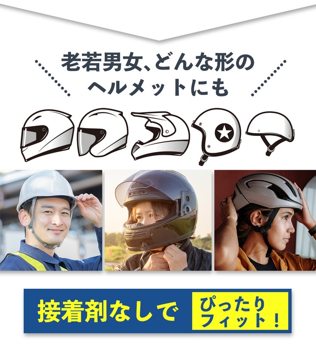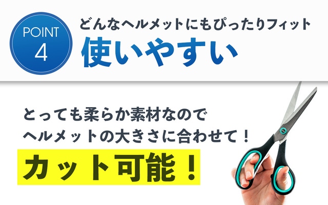 - カット可能!老若男女問わずどんなヘルメットにも接着剤なしでぴったりフィット