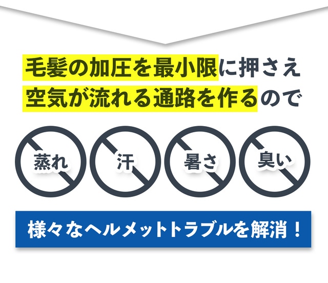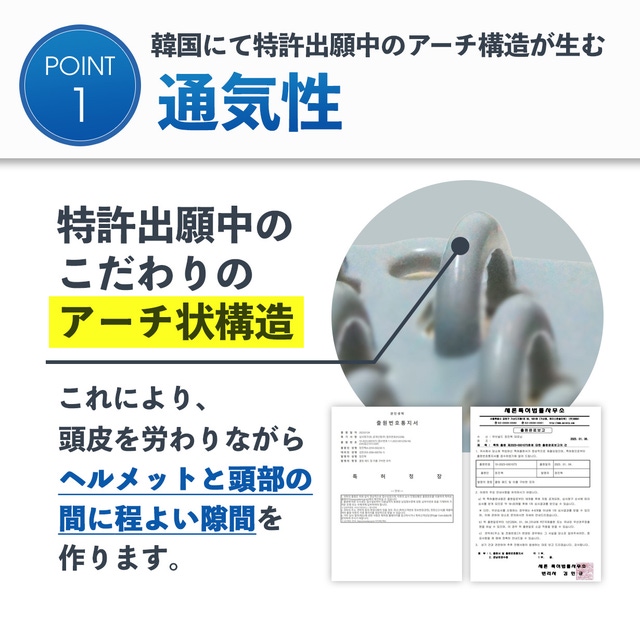- 韓国で特許出願中のアーチ状構造で通気性UP!匂い・蒸れ・暑さ・髪型崩れ・ヘアトラブルを防ぎます