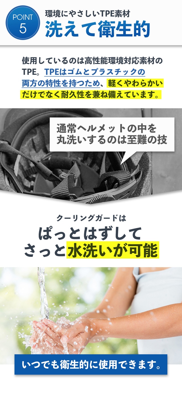 - 環境にやさしいTPE素材使用!今まで困難だったヘルメットの内側を洗うことができ、いつでも衛生的