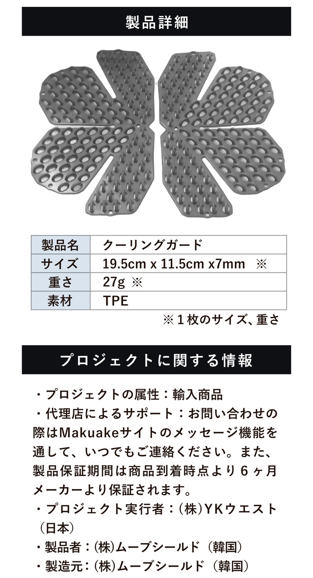 ※リターン品の配送が完了するまで、株式会社YKウエストは クーリングガードの日本における独占販売権を有する正規代理店です。詳細に関しては、ページ下部のリスク&チャレンジをご確認ください。