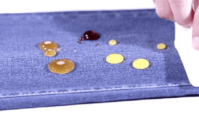 撥水性に優れ、液体が玉のようにころがり落ち、汚れが付きにくく落としやすい。もちろん雨にも強く、これからのシーズンに最適。