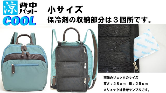 2、背中パット:20%OFF小サイズ¥3,132(携帯ポーチと保冷剤×6個付き)