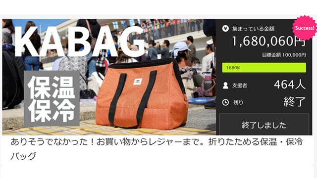 2018年のmakuakeプロジェクトで保温保冷バッグKABAGをデビューさせ464人の方にご支援頂きおかげさまで達成率1680%。大成功した【ありそうでなかった!】第1弾。