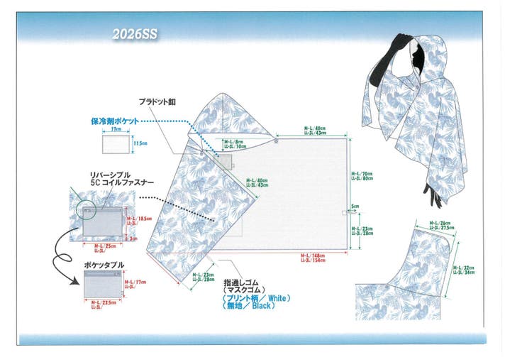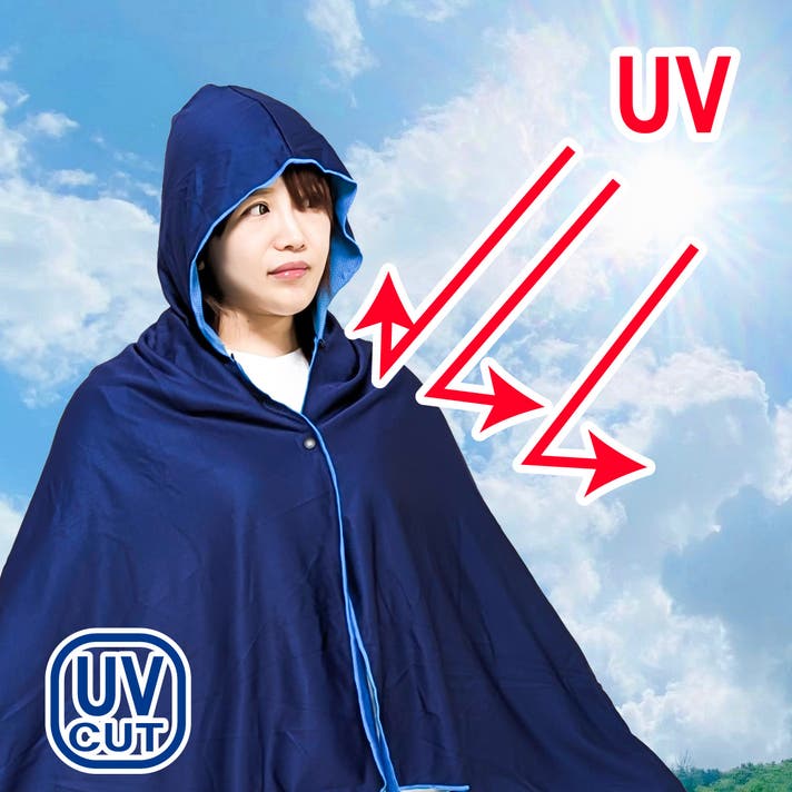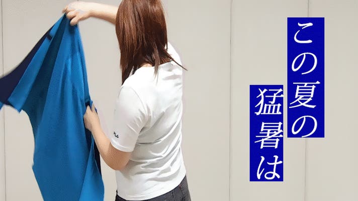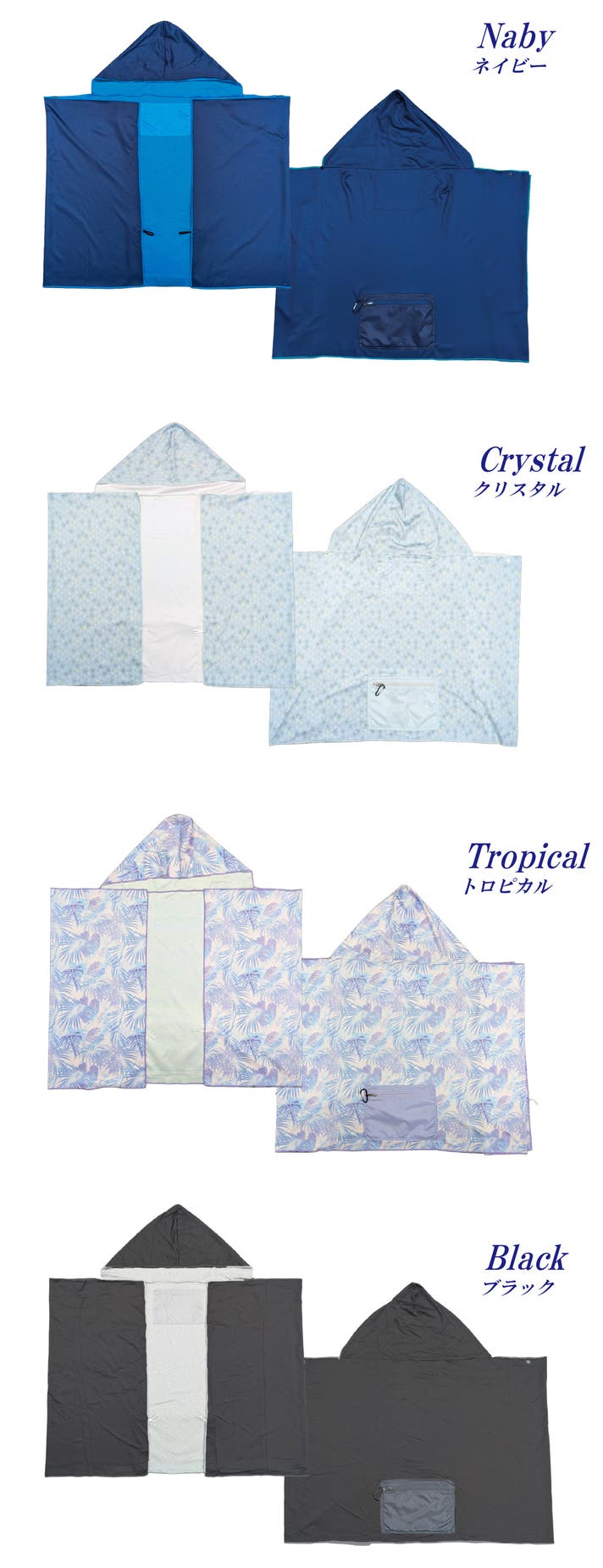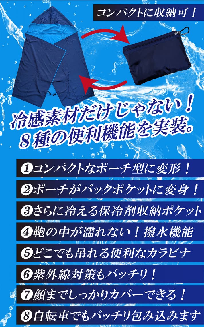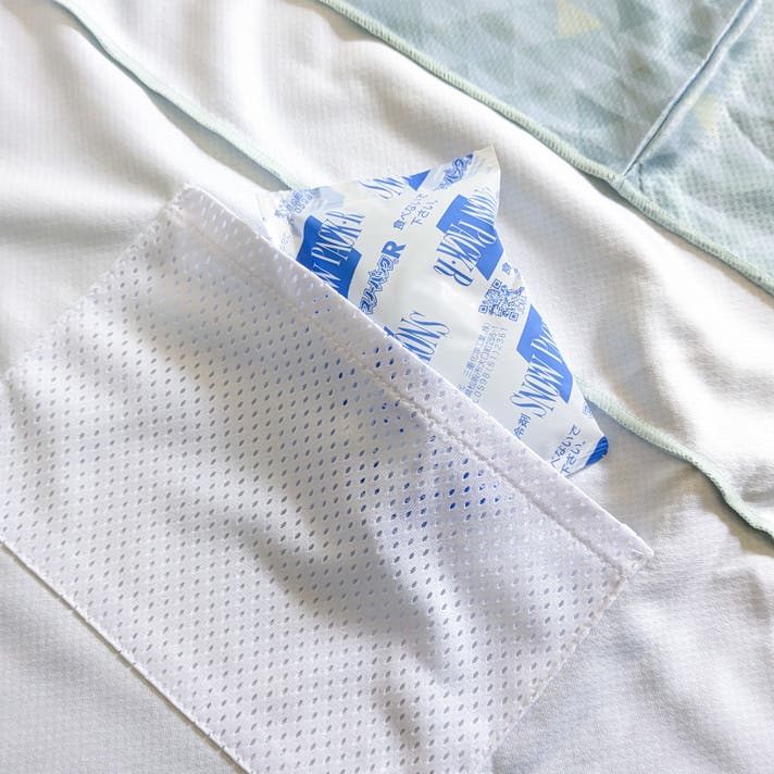 - 濡らして振るだけ、ひんやり持続。気化熱のチカラで暑い夏を快適に過ごす冷感ポンチョ