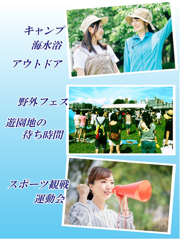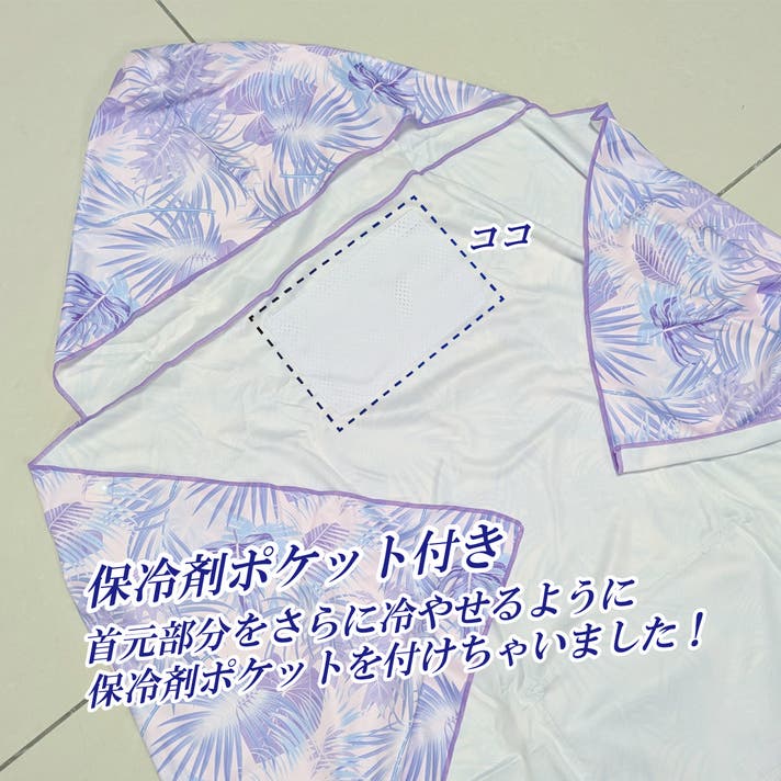 - UVカットや首元に保冷入れなど便利な機能が満載。