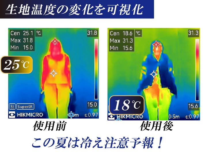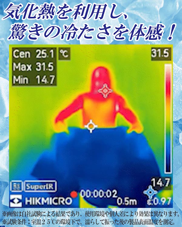 ※試験条件:室温25℃濡らして振った後の製品表面温度を測定。(自社調べ)
