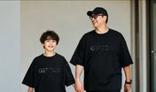 どちらを前にしても着られるように前下がりと後ろ下がりを同じにしました。冒頭の黒いTシャツの2枚の写真、<GD>と<GIFTED>の文字は、胸側でも背中側でもどちらにも着られます。
