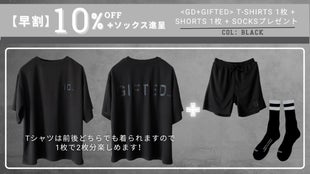 早割10%OFF 黒のTシャツと短パンのセットにソックスを一足進呈
