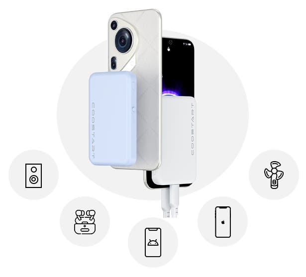 従来の移動式充電バッテリーは、スマートフォンの機種に制約があり、AndroidおよびAppleのiPhone 12以前のバージョンでは吸着充電ができず、落ちやすいという問題がありました。しかし、COOSTART K8は機種を選ばず、様々のモデルに対応しています。