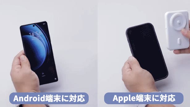 COOSTART K8は、AndroidやAppleの端末に対応可能です。従来のマグネット磁気充電器はiPhone 12以前のバージョンやAndroid端末には吸着できず、しかし、COOSTART K8はAndroidやAppleの端末を問い合わず対応できます。