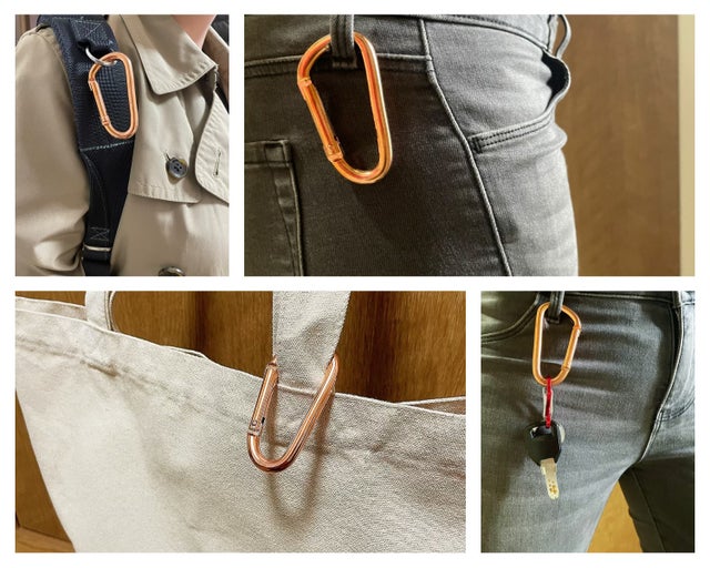 通常通り鍵を付けたり、バッグやベルトに付けて活用したり、小さいのでポケットに入れても邪魔になりません。
