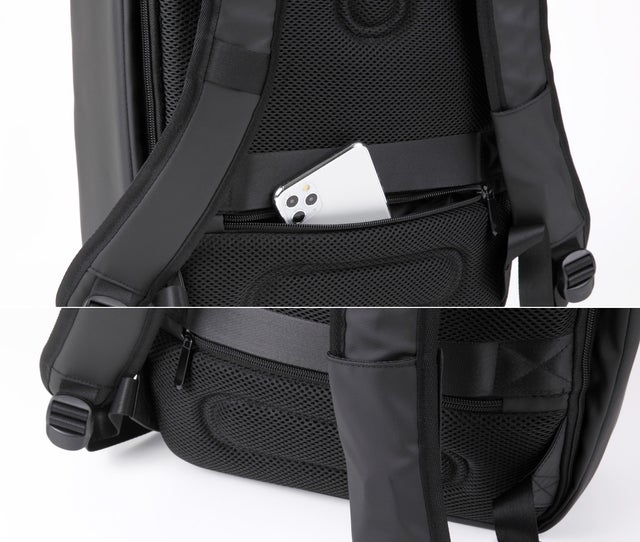 前側には、ファスナーポケット、オープンポケット+メッシュポケット。
