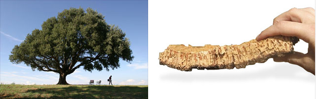 樹齢20年以上のコルク樫の木の樹皮を剥いだもの。