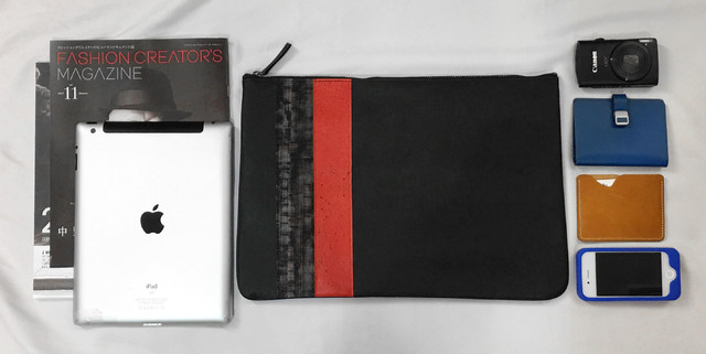クッション性のある生地を使用しているため、タブレットやスマホを入れても