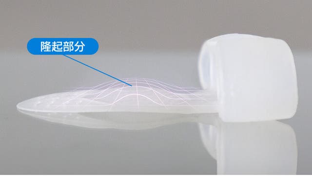 これにより地面反力の踏み込みポイントを認識できることと、隆起部により足の人差し指の付け根付近が押し上げられ、足裏の「三点バランス」を正しく使えるようになります。