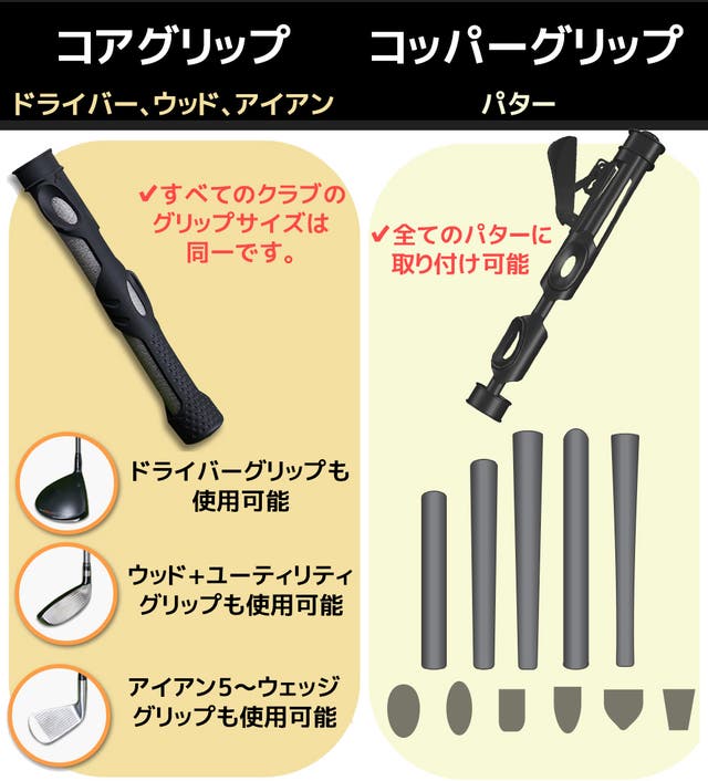 - コアグリップ、全てのクラブに装着OK! コッパーグリップも全てのパターに装着OK!