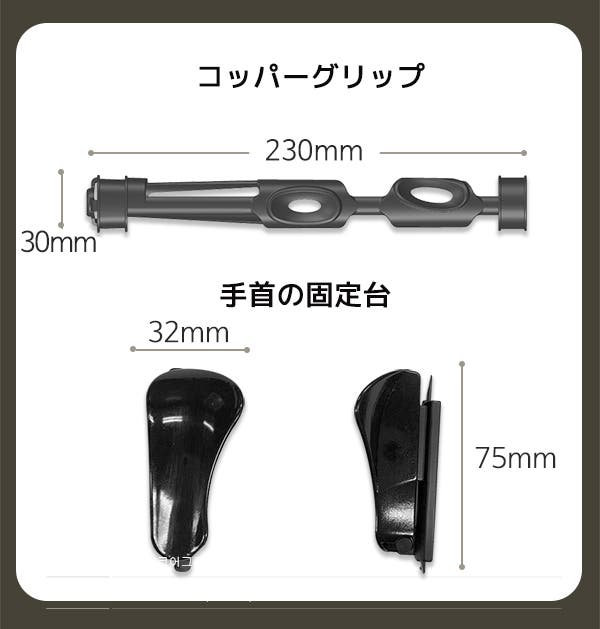 ■ 構成品 : コアグリップ 6個、コッパーグリップ 1個、フィクシングテープ 21個、手首固定台 1個