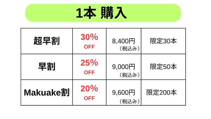 【超早割】一般販売予定価格12,000円の 30%off 8,400円 (税・送料込み)