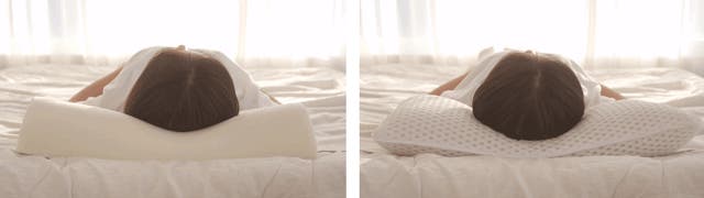 へこんだ枕を使用すると、首や肩が当たる部分の高さが変わり、肩のラインが斜めになってしまい、背骨が曲がった姿勢になりがちです。