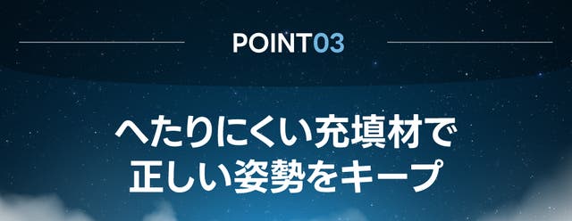 - 長期間使用しても形が崩れにくい充填材を採用し、正しい姿勢をしっかりサポートします!