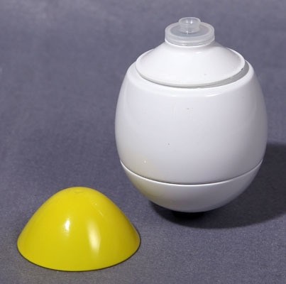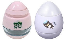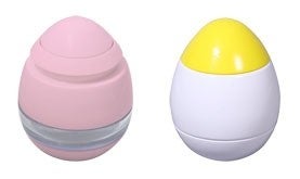 コロンとキュートなタマゴの形の醤油差し。エイっ!!と意地悪に倒してみても、