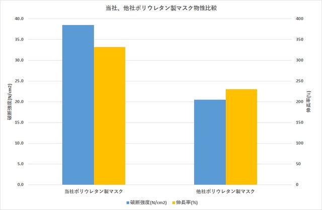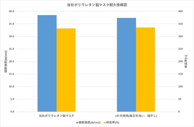 当社ポリウレタンマスクを3カ月使用し破断測定を行った結果