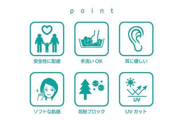 - 花粉粒子捕集効率99% UVカット99% 安全性に配慮 手洗いOK 耳に優しい ソフトな肌感