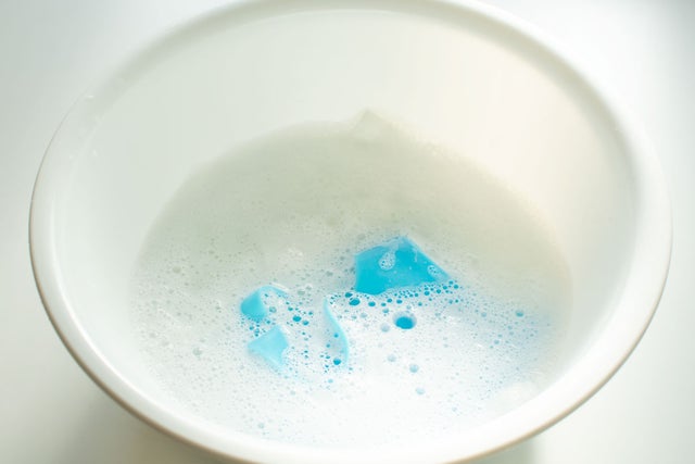 ①洗面器に中性洗剤を入れる。